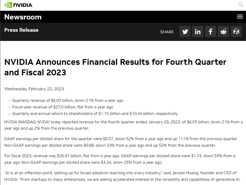 NVIDIA、データセンター/自動車関連が記録的増収。売上高は約270億ドル