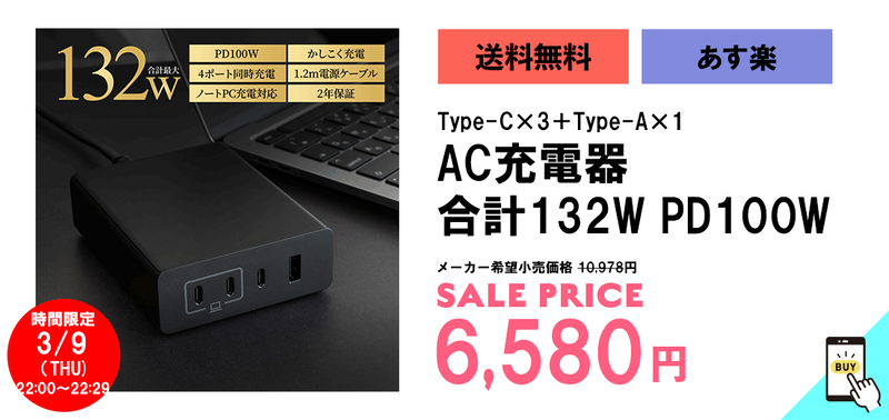 オウルテック、4ポート合計出力132WのUSB充電器
