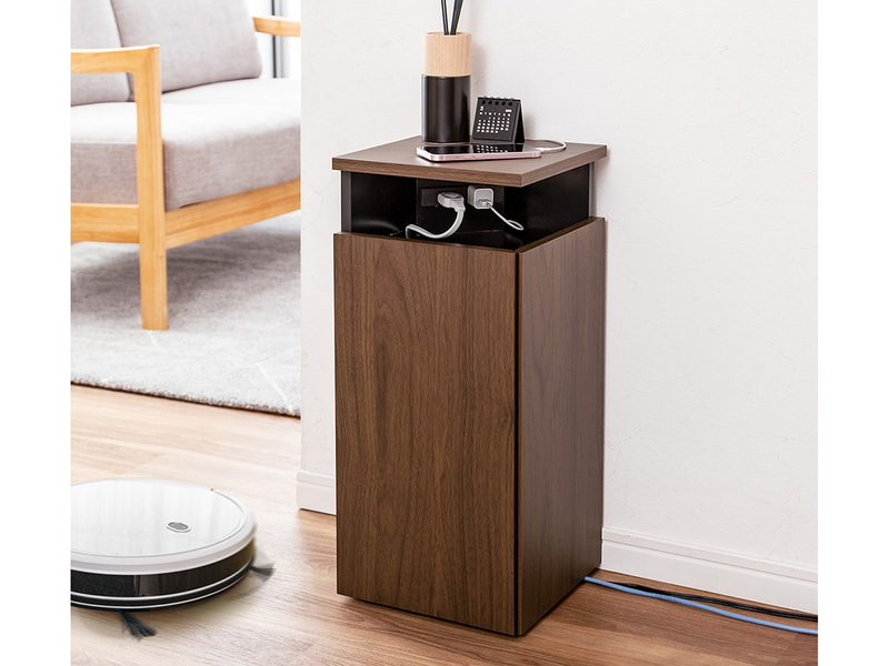 電源タップを隠しつつ操作可能な収納ボックス、サンワサプライから