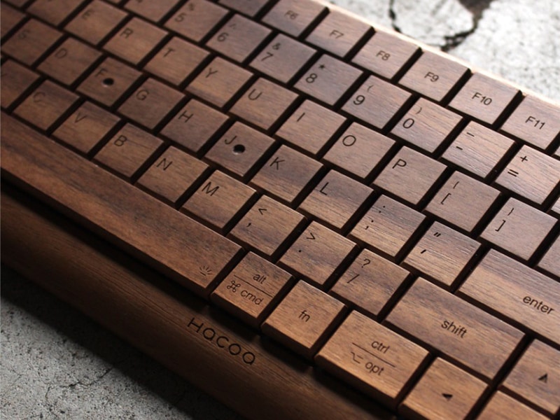 キートップや外装に無垢材を用いた木製の無線キーボード