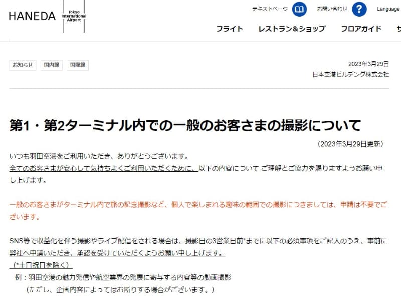羽田空港での撮影は急遽「収益化しないなら申請不要」に