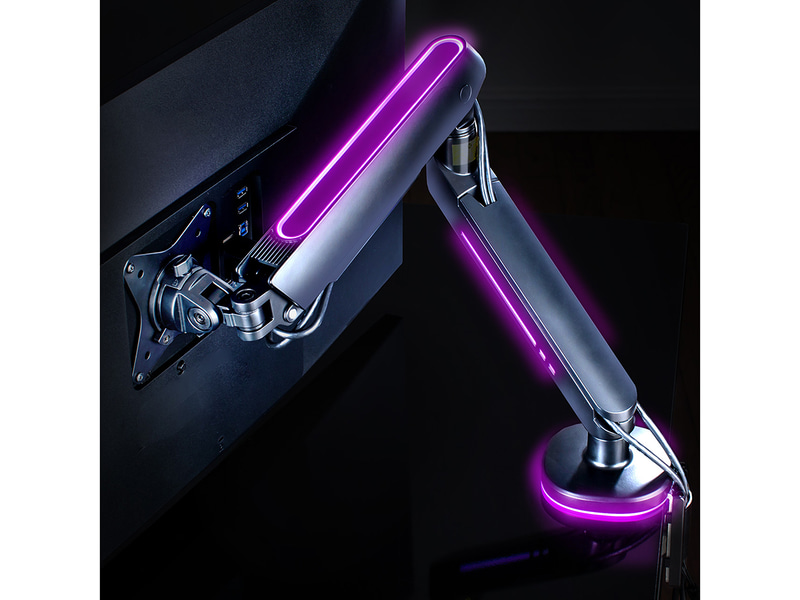 サンワサプライ、7色に光るゲーミングモニターアーム