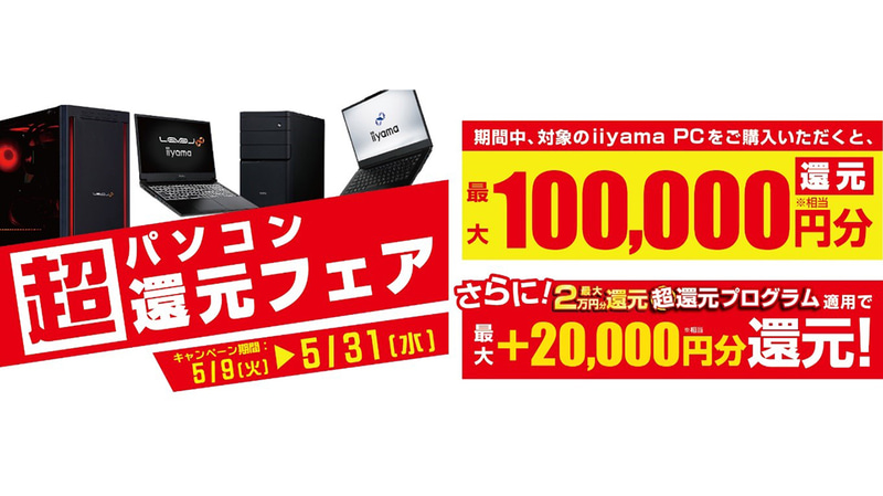 パソコン工房、新品PC購入で最大10万円分相当が還元されるキャンペーン
