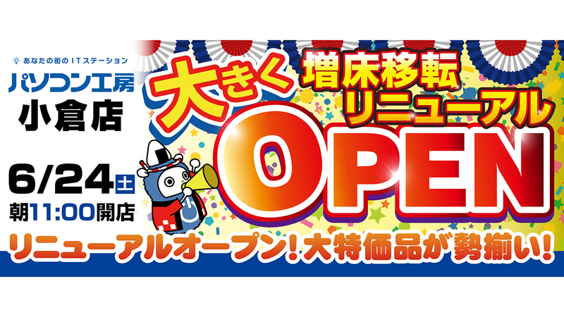 パソコン工房小倉店が6月24日より移転。リニューアルで記念セールも