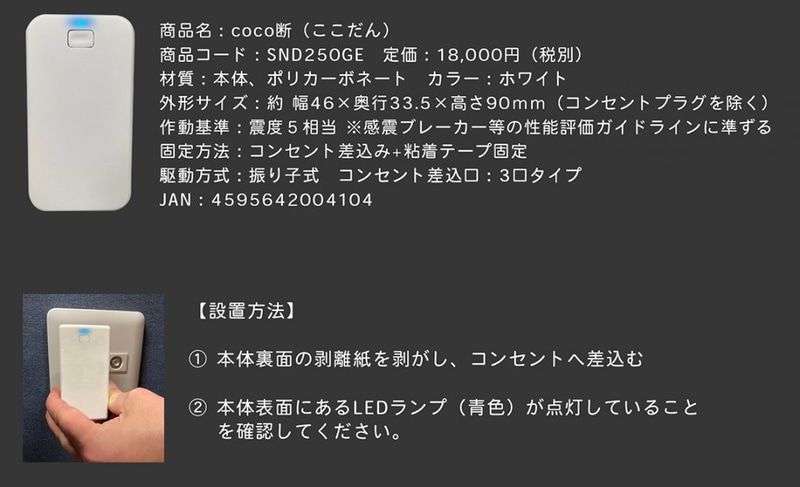 震度5強以上で電気遮断する感震ブレーカー。コンセントに後付け