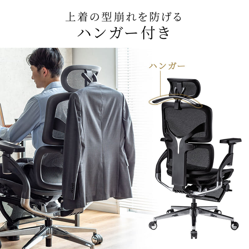 • サンワサプライ、リクライニングやオットマンを備えたオールメッシュチェア