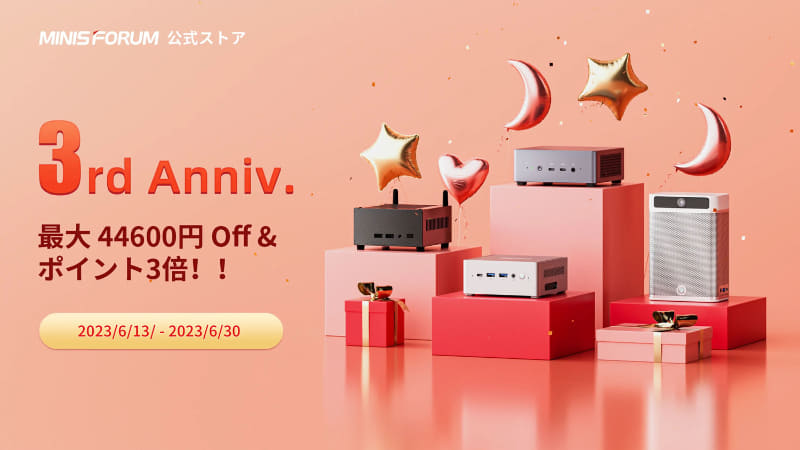 MINISFORUM公式ストア開設3周年記念キャンペーン。獲得ポイント倍増や6カ月の延長保証など