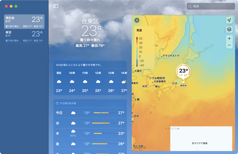 超高機能なMacの「天気」アプリで気象情報をチェックしよう