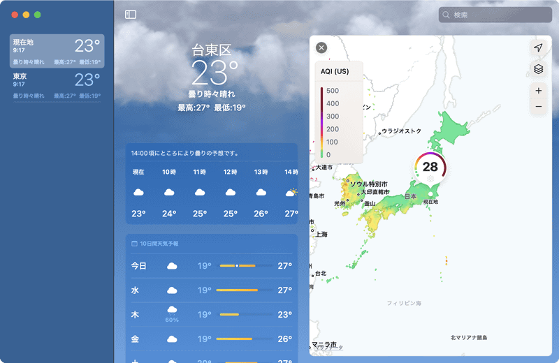 超高機能なMacの「天気」アプリで気象情報をチェックしよう