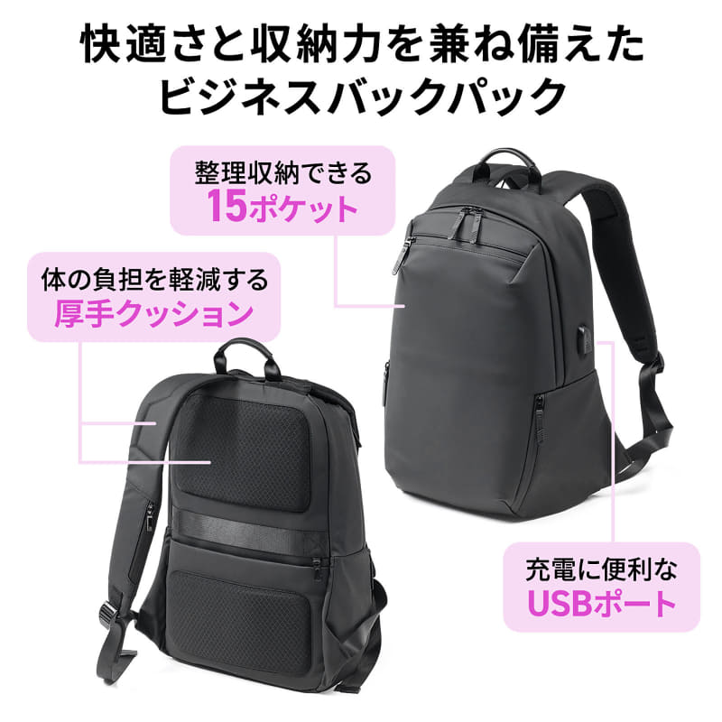 サンワサプライ、メッシュクッションと15個のポケットを備えた耐水ビジネスリュック(2/7)