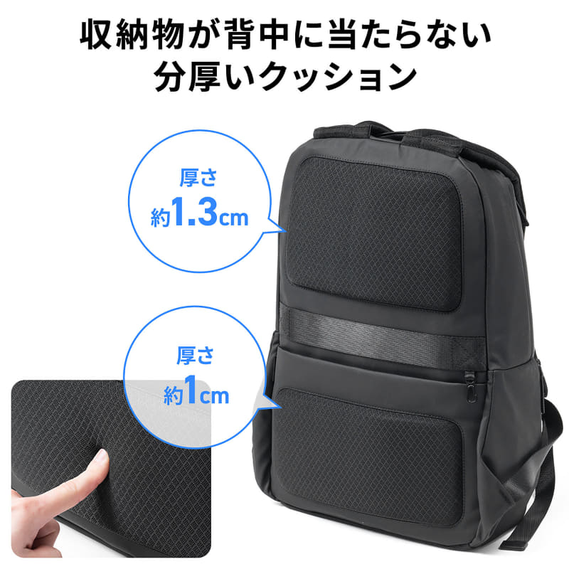 サンワサプライ、メッシュクッションと15個のポケットを備えた耐水ビジネスリュック(3/7)