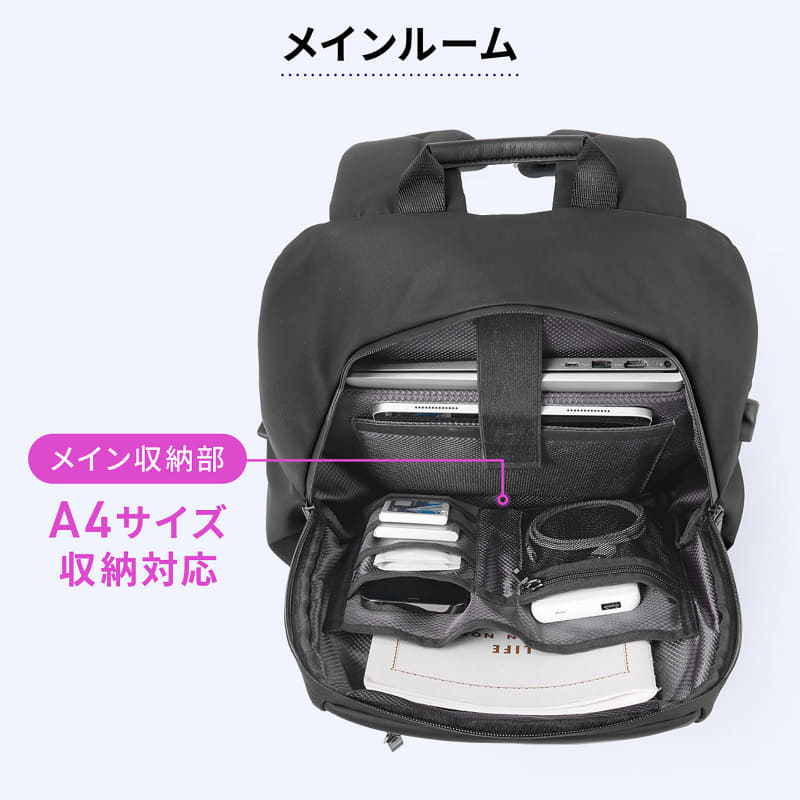 サンワサプライ、メッシュクッションと15個のポケットを備えた耐水ビジネスリュック(4/7)