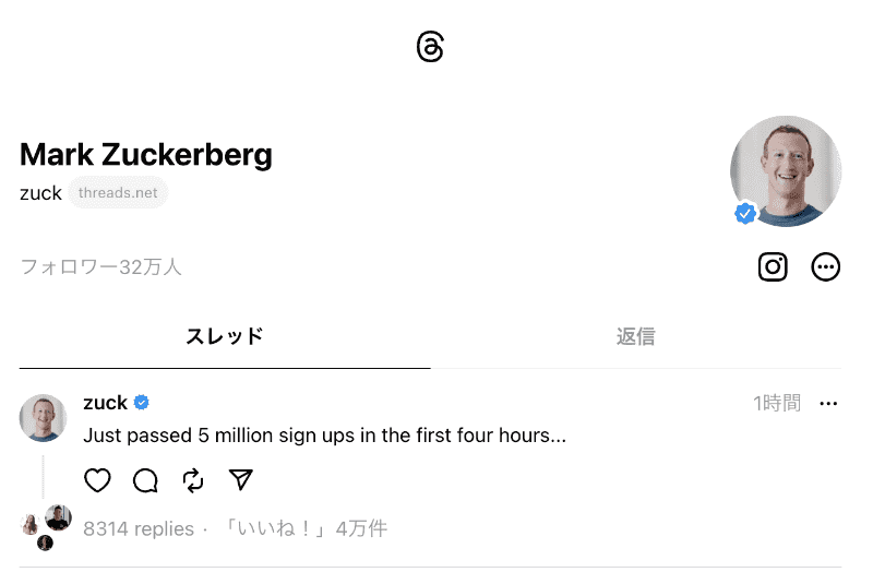 Twitter対抗「Threads」がサービス開始。500文字投稿可能、公開2時間で200万ユーザー突破