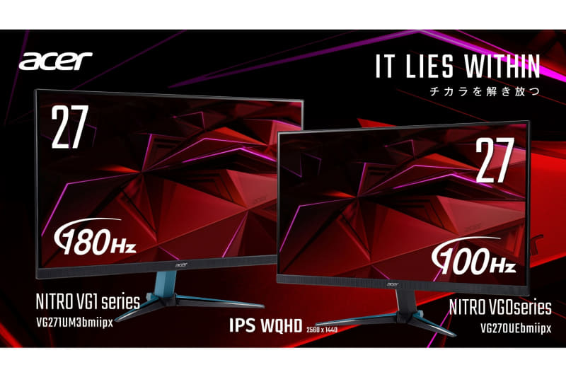日本エイサー、180Hz駆動/0.5ms対応の27型WQHDゲーミングモニター