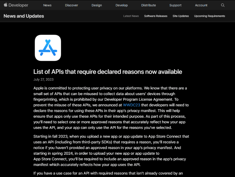Apple、アプリ開発者に特定APIの利用について目的の説明を義務化