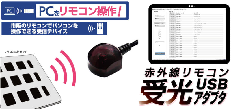 リモコンによるPC操作を可能にする赤外線受信デバイス。最大20動作を登録可能