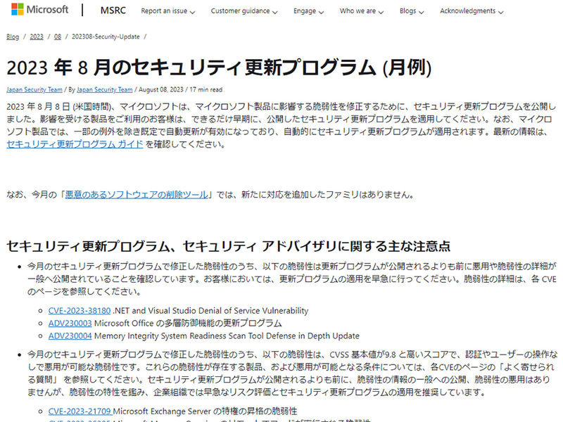 サービス運用妨害につながる.NETの脆弱性など修正。Windows向け8月度パッチ