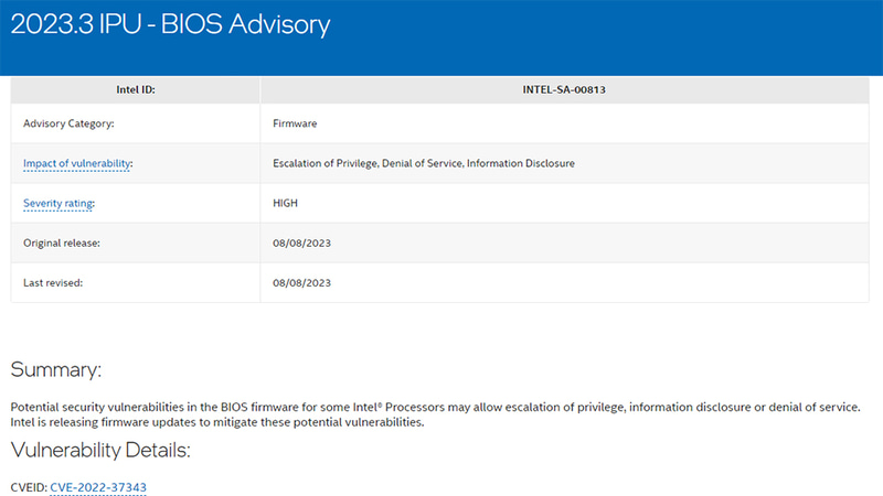 Intel、第11世代までのCPUに影響する脆弱性などに対処