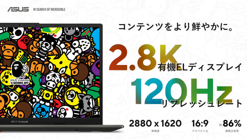 ASUS、BAPEとコラボした第13世代Core H/120Hz有機EL搭載ノートPC