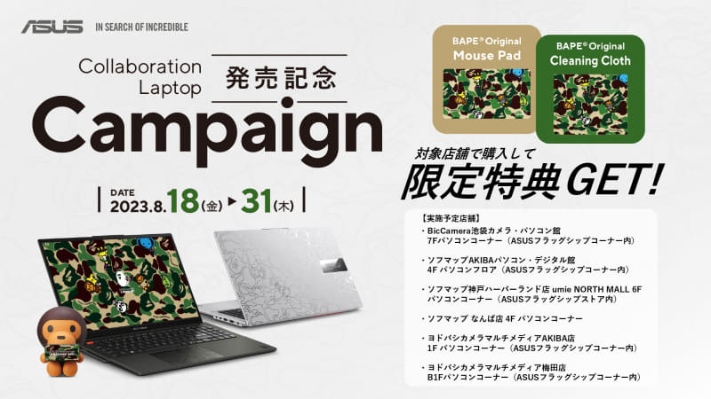 ASUS、BAPEとコラボした第13世代Core H/120Hz有機EL搭載ノートPC