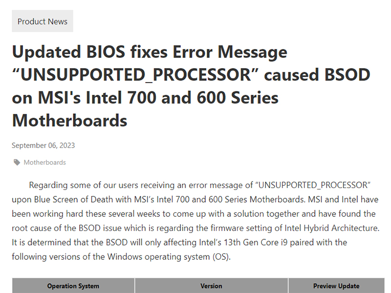 Windows8月累積更新でブルスクになる問題、MSIが対応BIOSを提供開始