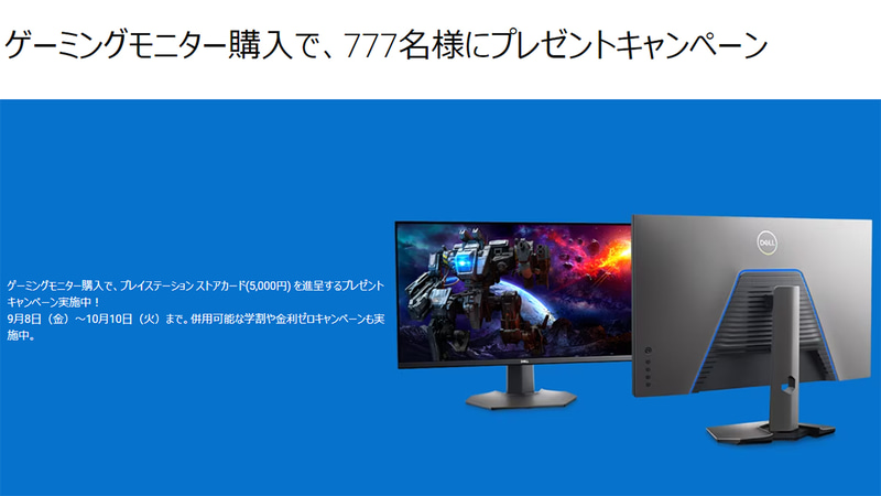 デル製ゲーミングモニター購入で5千円分のPSストアカードが当たるキャンペーン