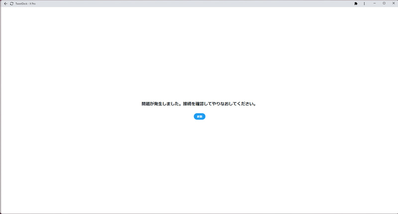 有償版「X Pro」(TweetDeck)で一時障害。「接続を確認してやりなおしてください」