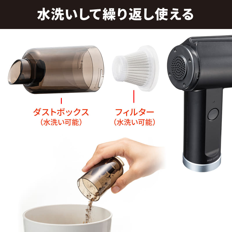 サンワサプライ、手のひらサイズで充電式の電動エアダスター