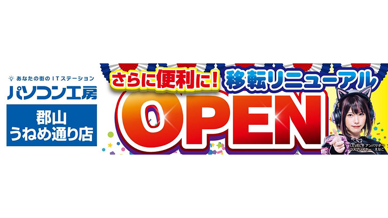 パソコン工房、郡山うねめ通り店が11月にリニューアルオープン。郡山店を移転