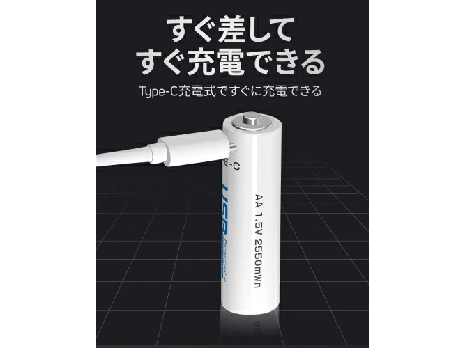 本体にUSB Type-Cを装備した単3/単4形充電池
