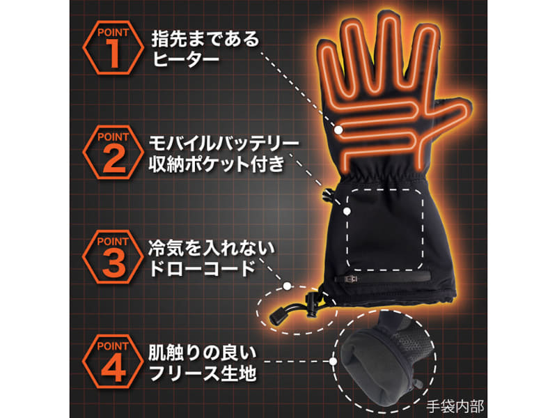 サンコー、USB給電で暖まるヒーター内蔵手袋