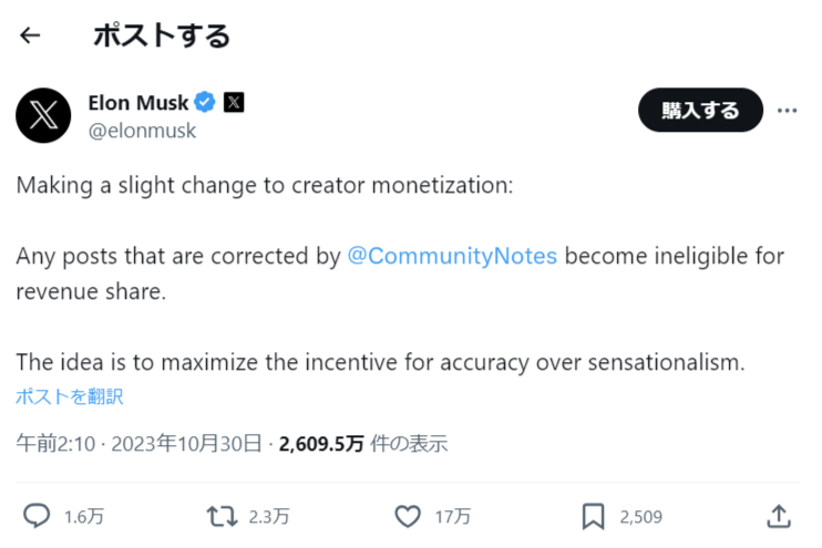 X(Twitter)、不正確な投稿を収益対象外に。コミュニティノートの活用で