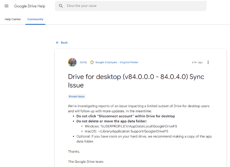 デスクトップ版Googleドライブで同期不具合、半年分のファイルが消失したユーザーも