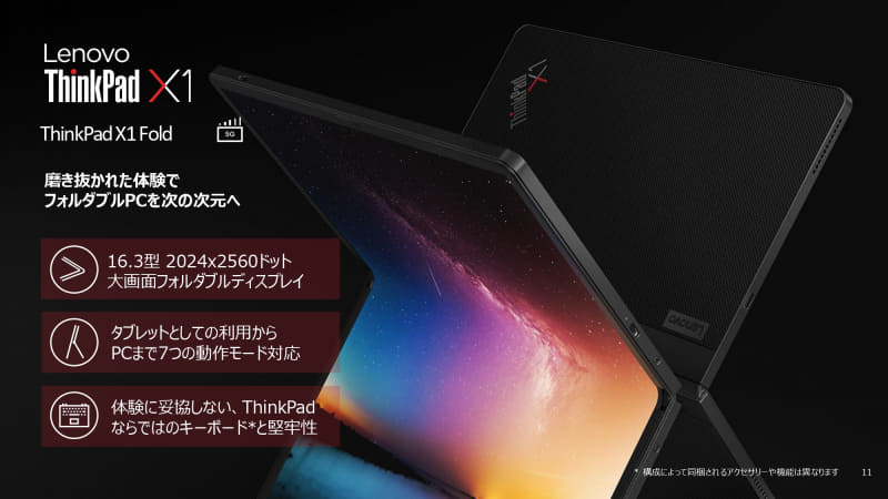 • 折りたためる16.3型有機ELを搭載した新「ThinkPad X1 Fold」が10月中旬発売