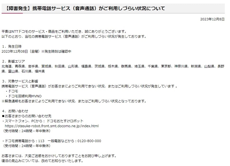 ドコモ、東日本を中心に大規模通話障害。MVNOも影響