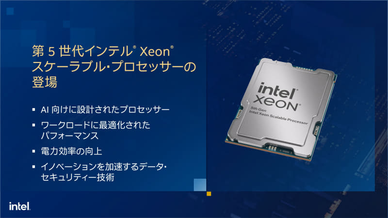 AI性能や電力効率重視の「第5世代Xeon」、前世代やEPYCと比較しても優位