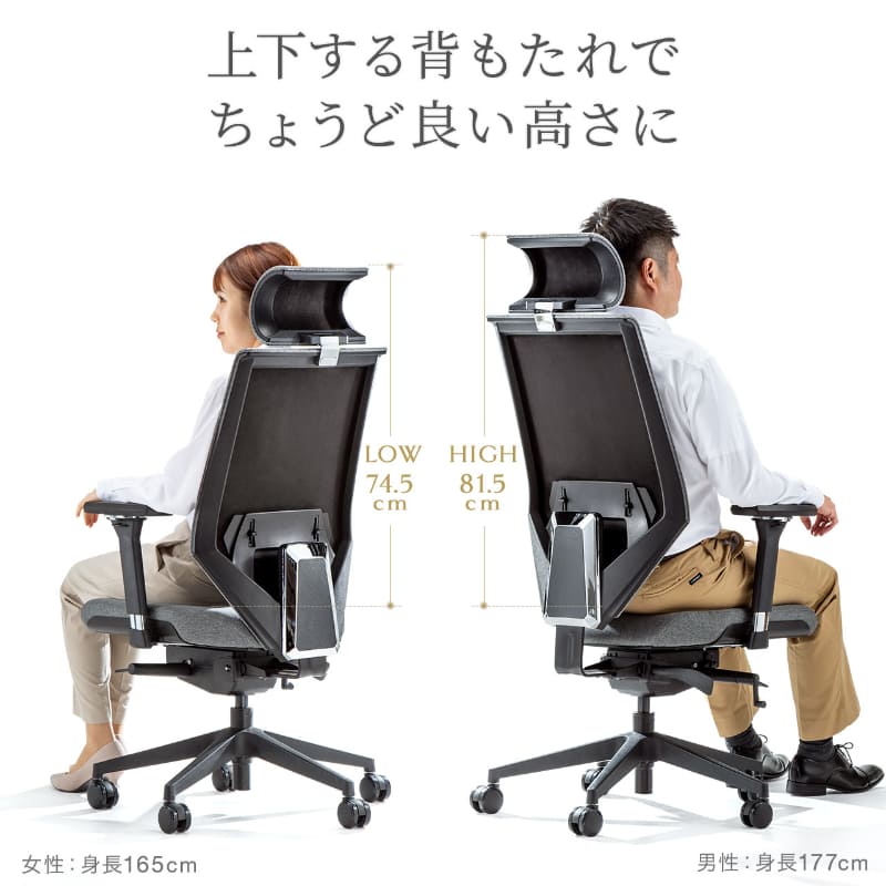サンワサプライ、腰への負担を軽減する分割背もたれのチェア