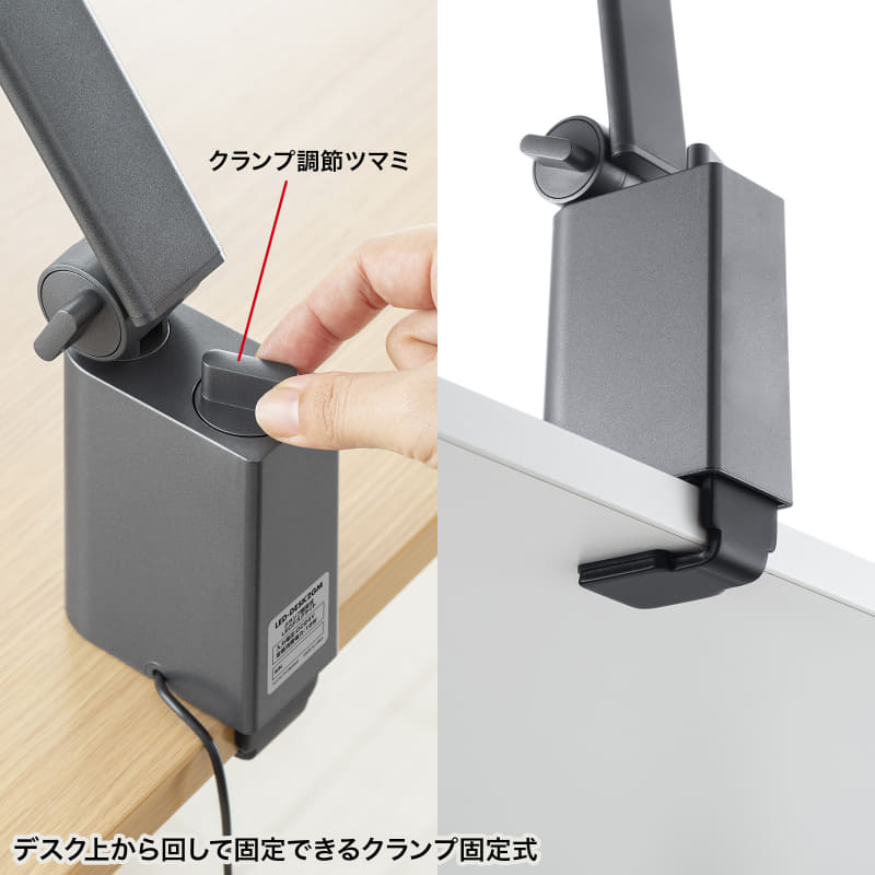 サンワサプライ、クランプ式固定で3関節のデスクライト