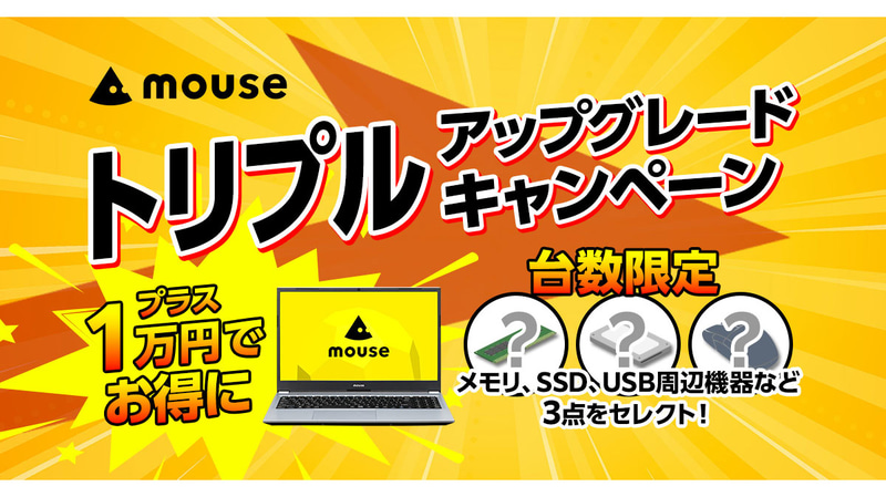 マウス、プラス1万円でSSDやメモリなど強化の特価PC。数量限定で発売