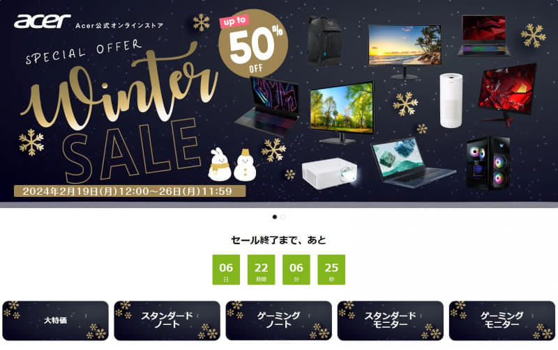 日本エイサー直販「Winter SALE」。GeForce RTX 4080ノートが23%オフ