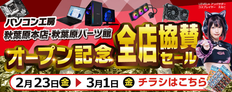 「パソコン工房 秋葉原本店・秋葉原パーツ館オープン記念全店 協賛セール」開催。パーツやPCがお買い得に