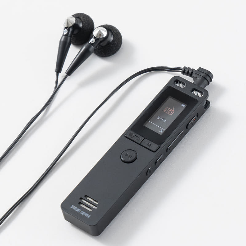サンワサプライ、軽量小型でラジオ録音も可能なボイスレコーダ。ノイズキャンセリング搭載