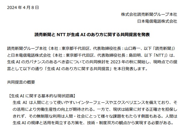 「生成AIの無制限な利用は人間・社会にとってさまざまな課題をもたらす」。読売新聞とNTTが共同提言