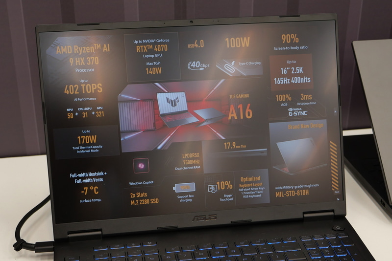 ROG、Copilot+ PC準拠のゲーミングノートPC展示。カラーE Ink天板のプロトタイプも