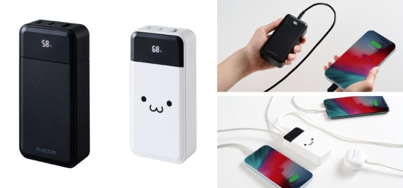 エレコム、USB Type-C×2搭載で20,000mAhの大容量モバイルバッテリ