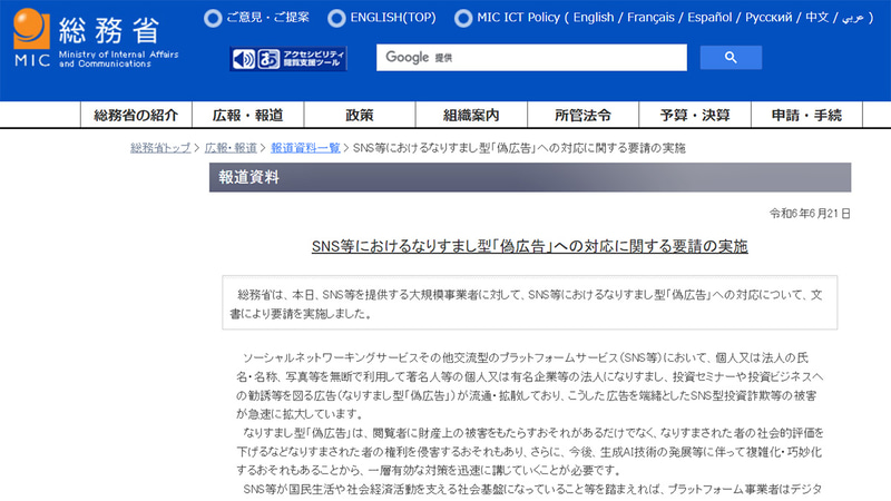 松本総務大臣、なりすましなど詐欺広告への法的対策を検討