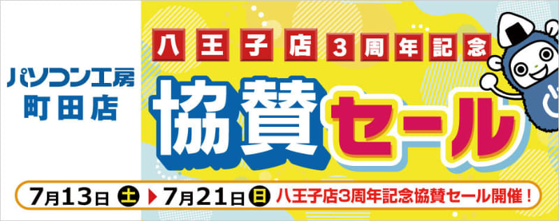 パソコン工房 八王子店、オープン3周年を記念したセール。町田店でも開催(2/4)