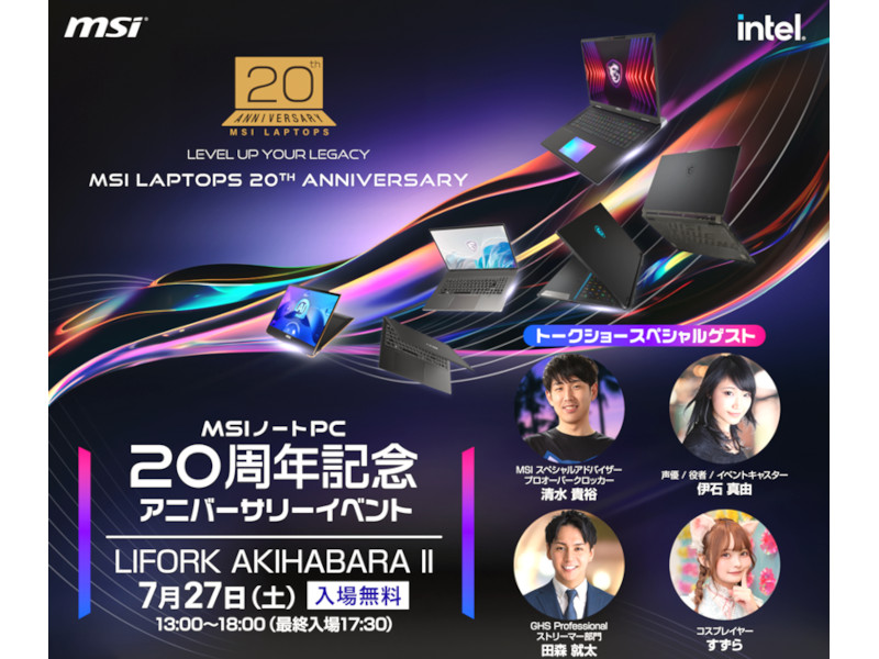 MSI、同社ノートPCの誕生20周年記念イベントを秋葉原で開催