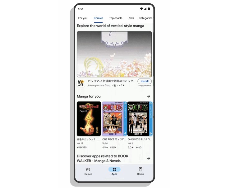 日本独自。Google Playストア内でマンガ1巻の立ち読みが可能に