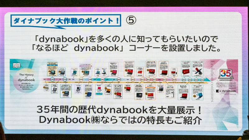 • dynabook 35周年を祝う「ダイナブック大作戦 in 秋葉原」開催。歴代製品の展示も